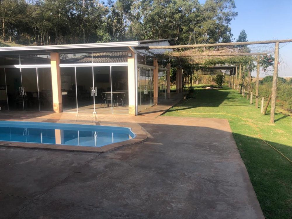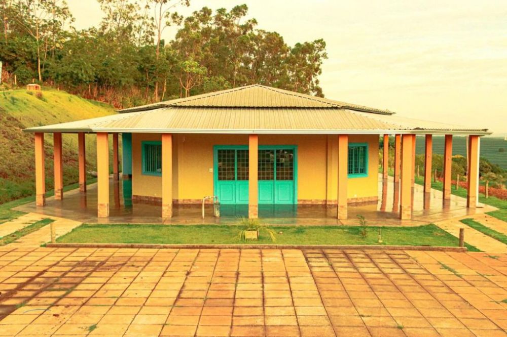excelente Espaço ideal para Pousada, Escola de Treinamentos, cursos, reuniões de Empresa, Casamentos, Clínica de Recuperação Dependentes Químicos, Idosos, Desintoxicação, Eventos, Pousada, hotel Fazenda e outros, com 20.000M2 toda estruturada com poço artesiano, transformador bifásico 200 amperes, caixa de agua com 25.000 litros, parte já cercada com tela e palanque de eucalipto tratado, estacionamento para 60 carros com piso e blocos de concreto, 50% com grama esmeralda, bosque com mata nativa, pomar, 01 – Piscina em Fibra 20.000 litros, Sala reunião, palestra e atividades em geral, sendo com área livre interno e externo, refeitório grande com vidro blindex, Cozinha com balcão L toda em granito com 02 cubas, Espaço Gourmet com balcão em L, pia e churrasqueira toda em granito, Espaço em volta aberto com cobertura para uso nas atividades e refeitório com 50% coberta com telha sanduiche e 50% telha de barro, com 14 quartos sendo: 09 Suites e 5 quartos, Banheiro feminino externos com 02 lavatórios em granitos, 02 vaso sanitário, 01 chuveiro e Banheiro masculino externos com 02 lavatórios em granitos, 02 vaso sanitário, 01 chuveiro e 01 mictório, Banheiro com acessibilidade com 01 pia, 01 vaso e ducha, Dispensa para armazenamentos de mantimentos, Pergolado com mourão de eucalipto, Recepção grande, Banheiros grandes corredor com acesso aos quartos, Banheiro grande externo com acessibilidade com acesso aos quartos, Jardim interno, Recepção, Lavabo na Recepção, CASA DO CASEIRO construída no ponto estratégico com vista para as construções, contendo 04 quartos, 02 banheiros, sala, cozinha.